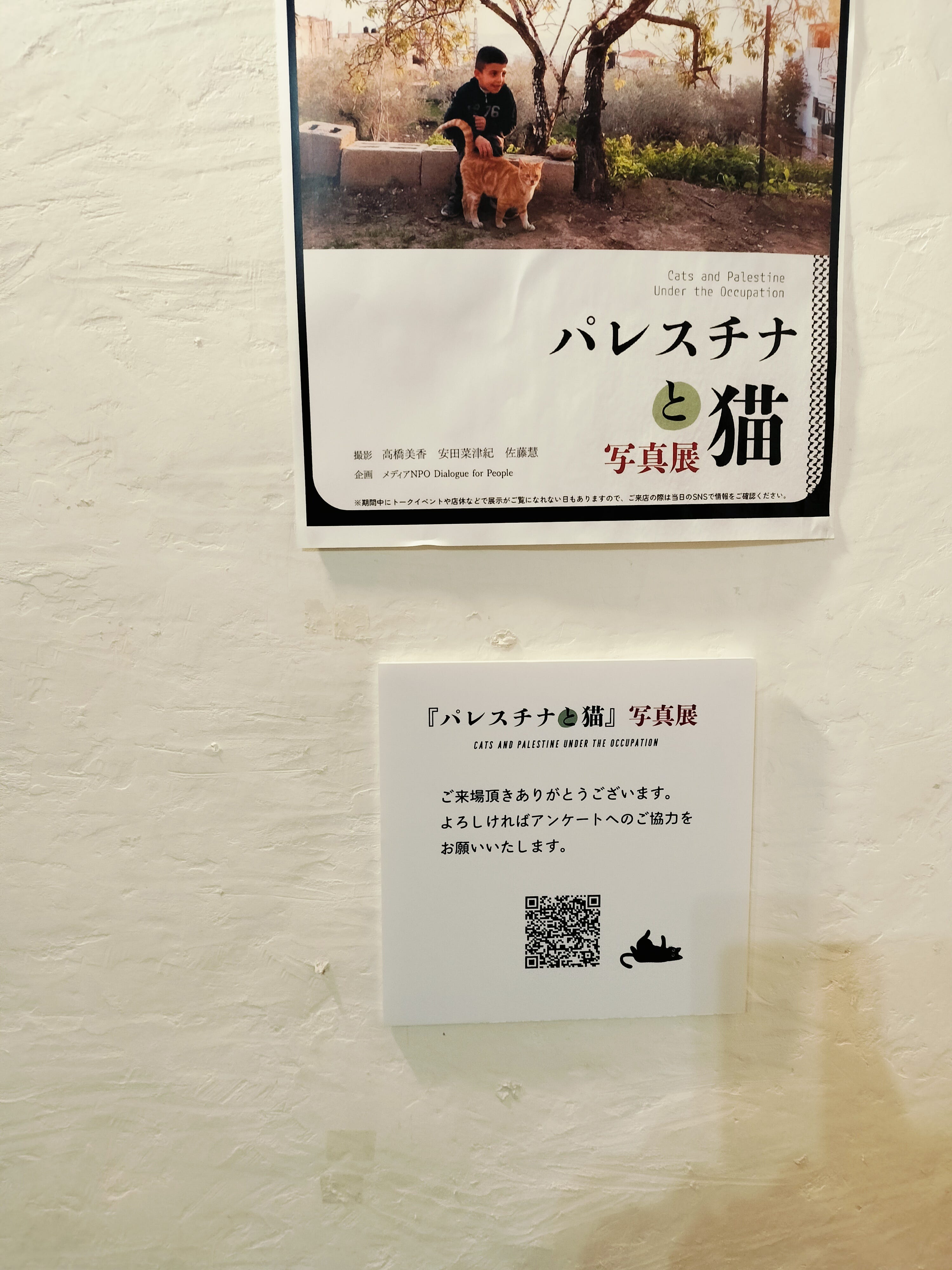 MoMoBooksさんはちょうどパレスチナと猫展という、パレスチナの猫を撮った写真展を開催中だった。パレスチナとつながりたい市民グループによるマクルーバというグループによる企画展だ。ちょうど『Maquluba! vol.2』という、ガザに嫁いだ日本人・ザハラさんのガザ滞在記zineがあったので、購入した。